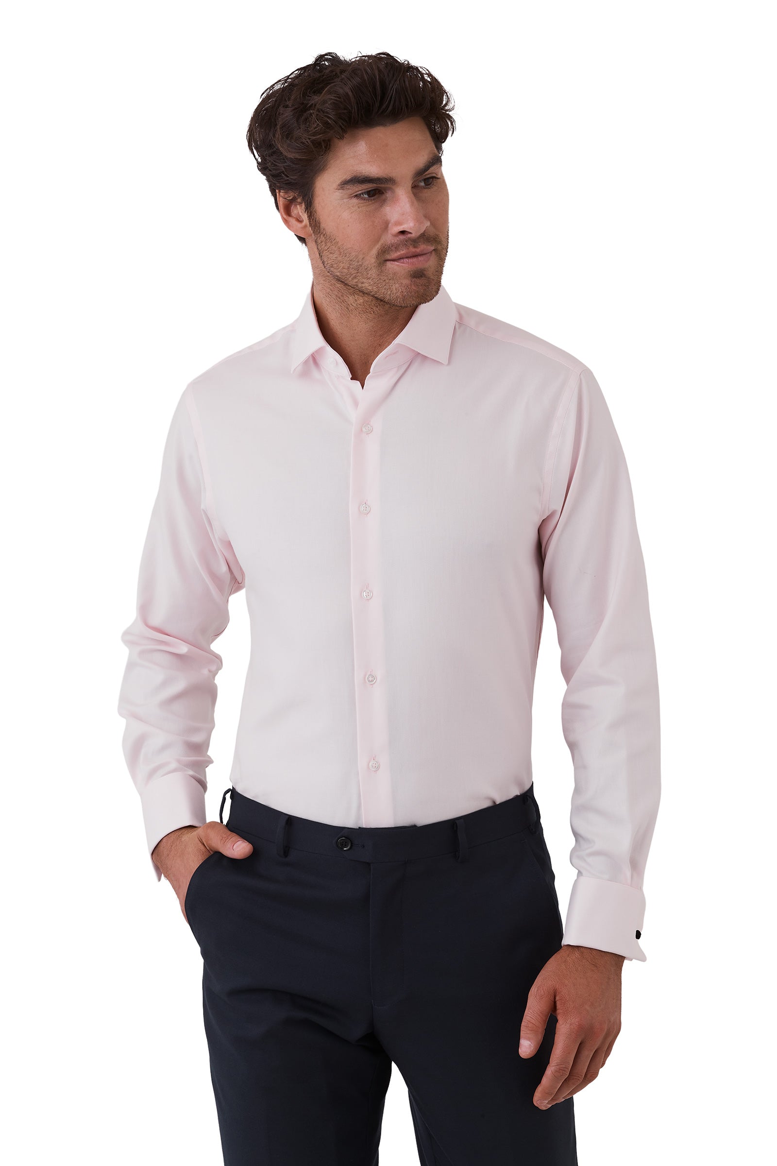 The Brooks Twill Shirt combines sophistication with timeless charm. Featuring a refined Italian cutaway collar and French cuffs, it's crafted from premium 100% cotton with wash & wear easy-care properties. Perfect for the modern professional.
